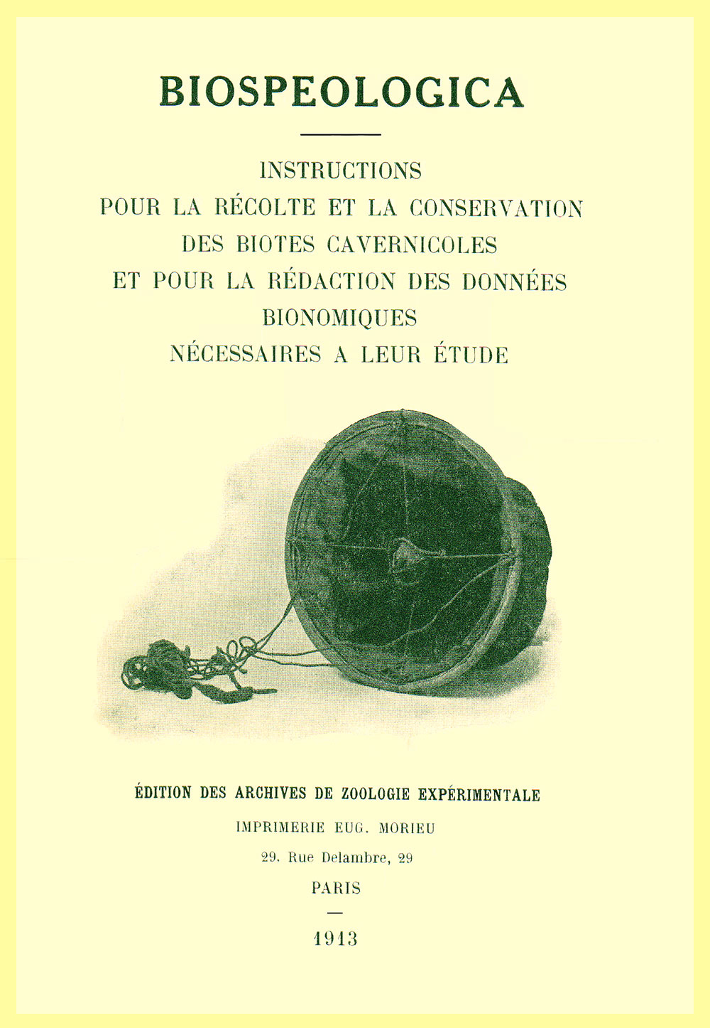 Biospeologica. Instructions pour la récolte et la conservation des biotes cavernicoles et pour la rédaction des données bionomiques nécessaires à leur étude. Edit. des Archives de Zoologie expérimentale et générale, Paris, 1913, 24 pp.