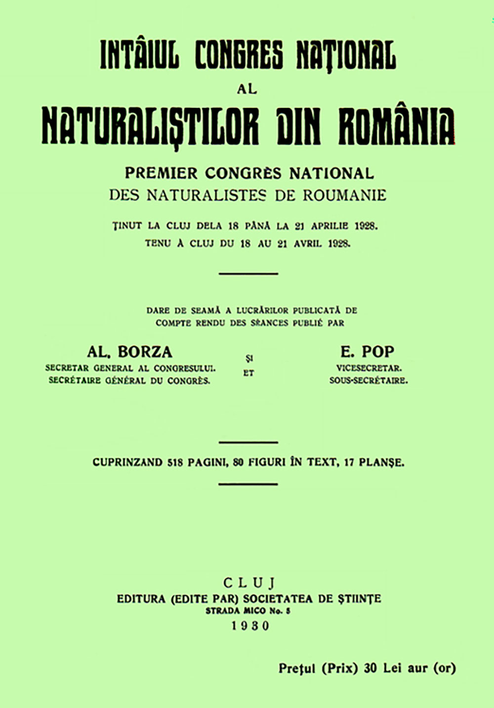 Conferinţă de deschidere a Congresului Naturaliştilor. În: Al. Borza şi E. Pop, Întâiul Congres naţional al Naturaliştilor din România (Premier Congrès national des Naturalistes de Roumanie) ţinut la Cluj de la 18 aprilie la 21 aprilie 1928. Dare de seamă a lucrărilor… Editura Societăţii de Ştiinţe, Cluj, 1930, p. 25-34.