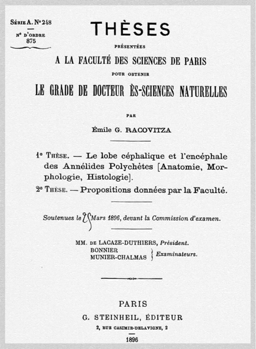 Le lobe céphalique et l’encéphale des Annélides polychètes (Anatomie, Morphologie, Histologie). Archives de Zoologie expérimentale et générale, Paris, 3-ème série, IV, 1896, p. 133-343.